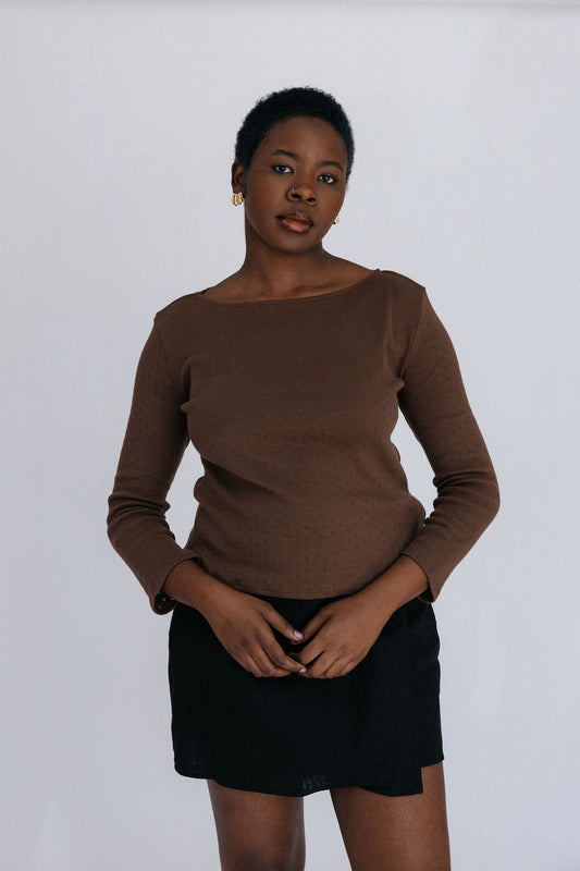 Andi Pointelle Tee | Chocolate