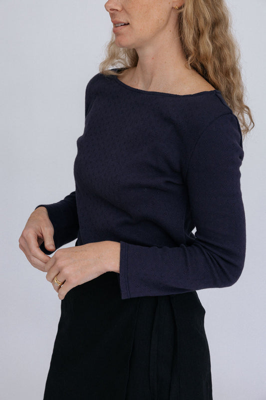 Andi Pointelle Tee | Navy