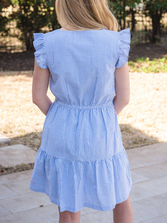 Women's Pink Stripe Tiered Short Dress