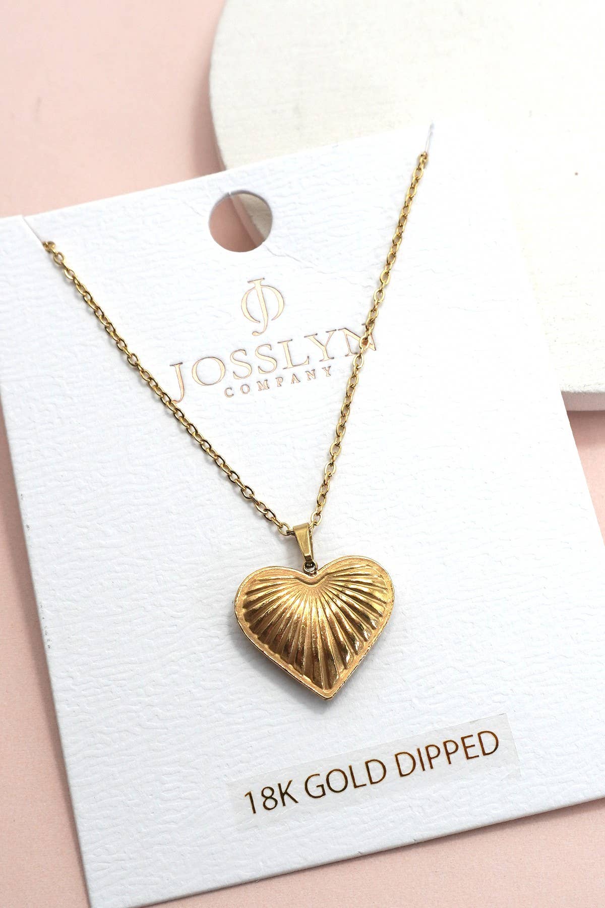 18K Stainless Steel Tarnish-Free Ridge Heart Necklace, a chic and timeless piece featuring a beautifully textured ridge heart pendant. Crafted from high-quality 18K stainless steel, this necklace is designed to be tarnish-free, ensuring long-lasting shine and durability.