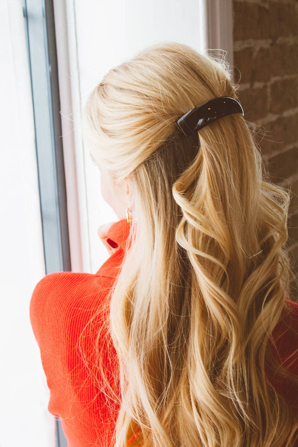 Barrettes are by far the easiest, cutest, and simplest way to style your hair. These barrettes are an adorable rectangle bar shape, made out of a high quality acetate material, attached to a French barrette. These will be your go-to accessory all season and come in three colors: Cream, Black, and Red!