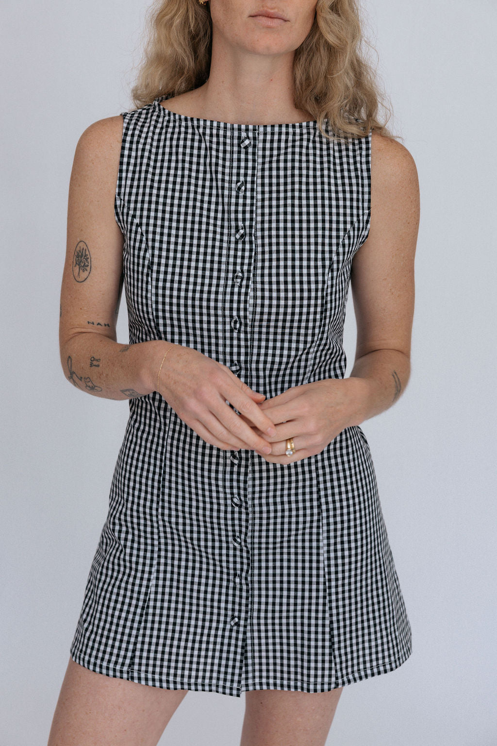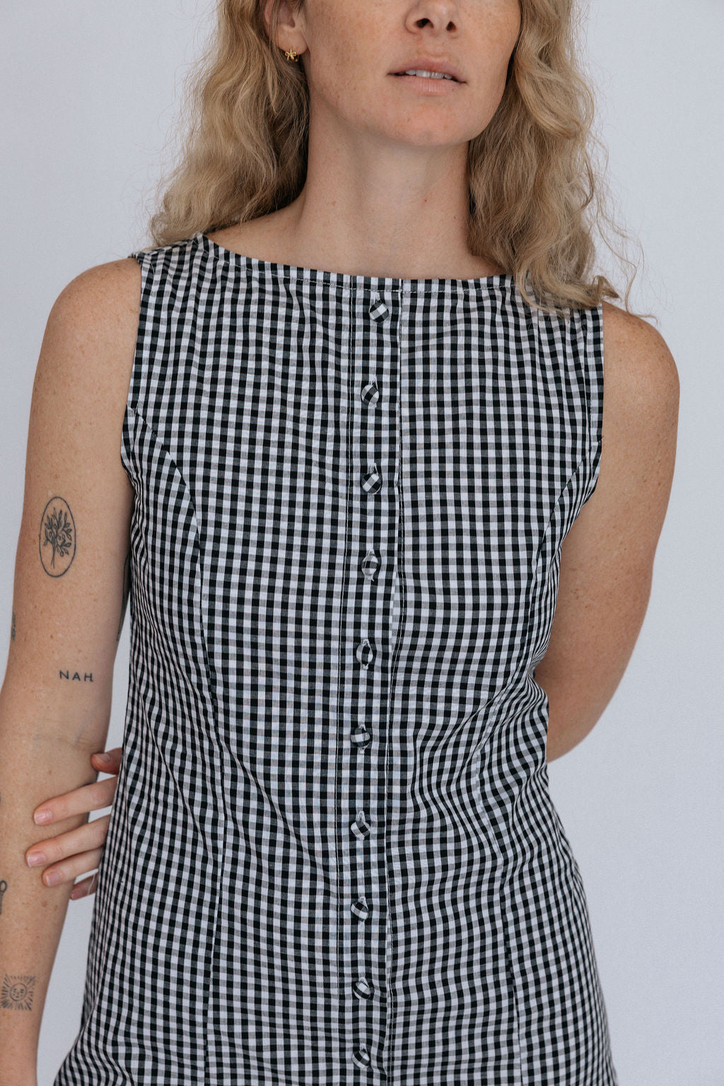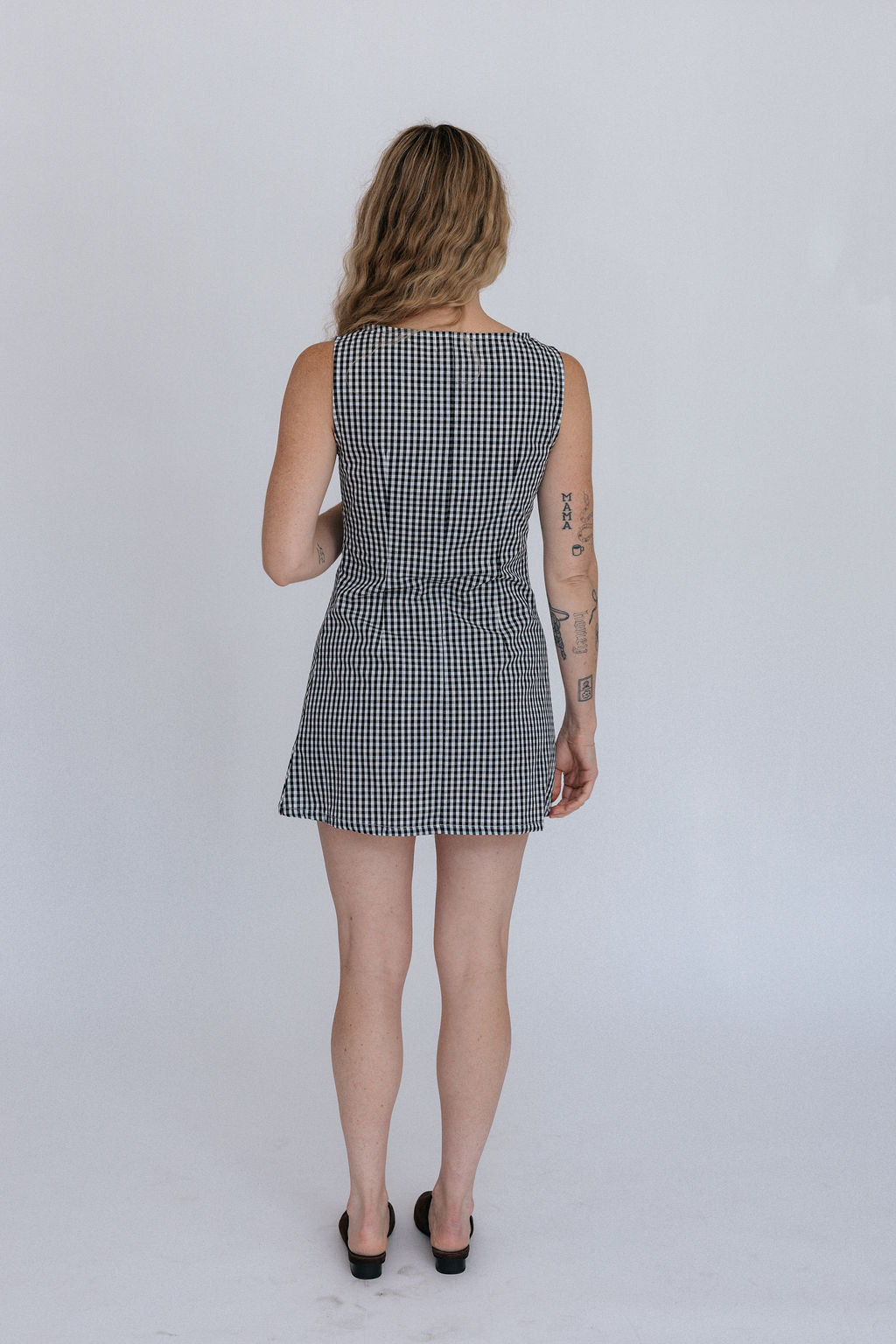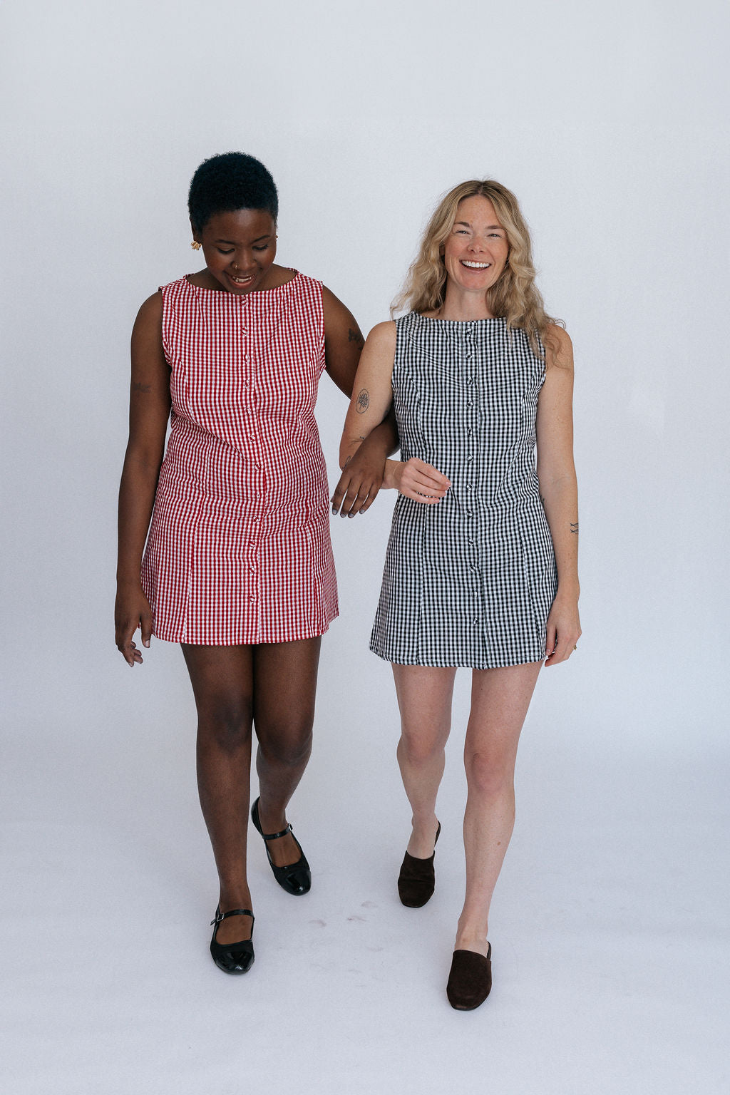 Add a little 60's sillhouette to your wardrobe. This 100% cotton dress has fabric covered buttons, a boatneck neckline, and little flair to the skirt. Comfortable and durable, the Bridgett Dress is perfect for farmer's market saturdays or fall gamedays.