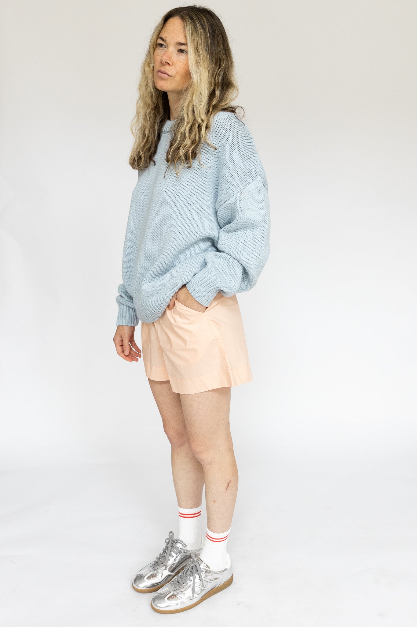 Stay comfortable and stylish with our Claire Sweater in sky blue. Made from 100% cotton and designed in-house, this sweater is perfect for any occasion. Upgrade your wardrobe with this must-have piece.