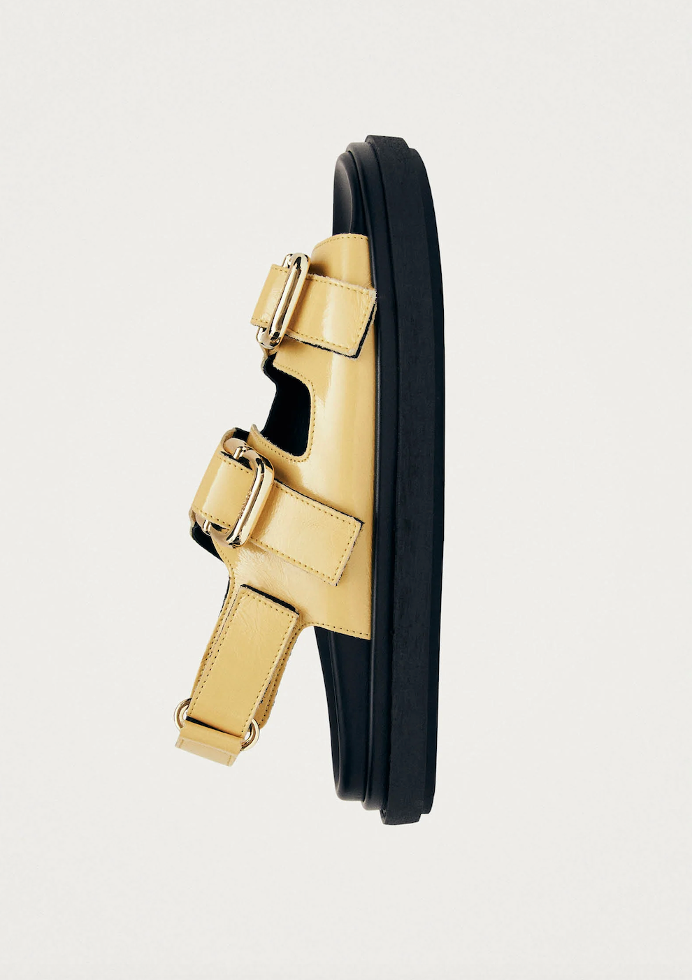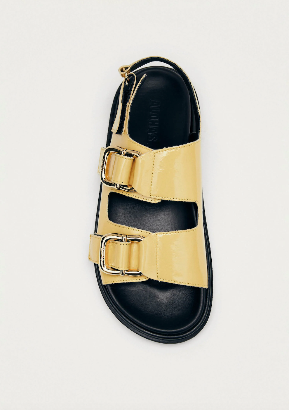Crafted from premium vanilla patent leather, the Harper sandals feature big-buckle straps and molded footbeds for enhanced support. A stacked midsole provides a subtle lift, while ample cushioning ensures lasting comfort.