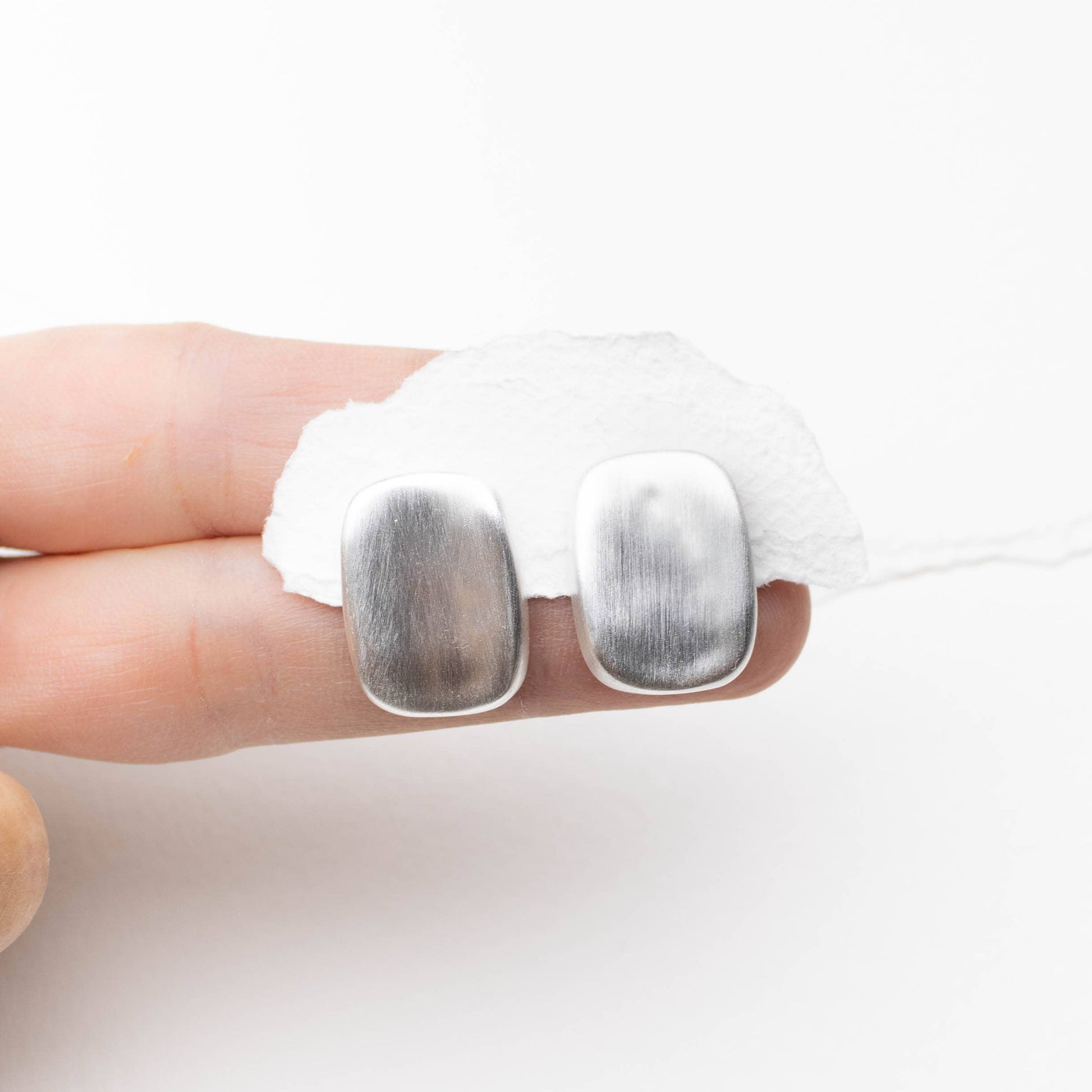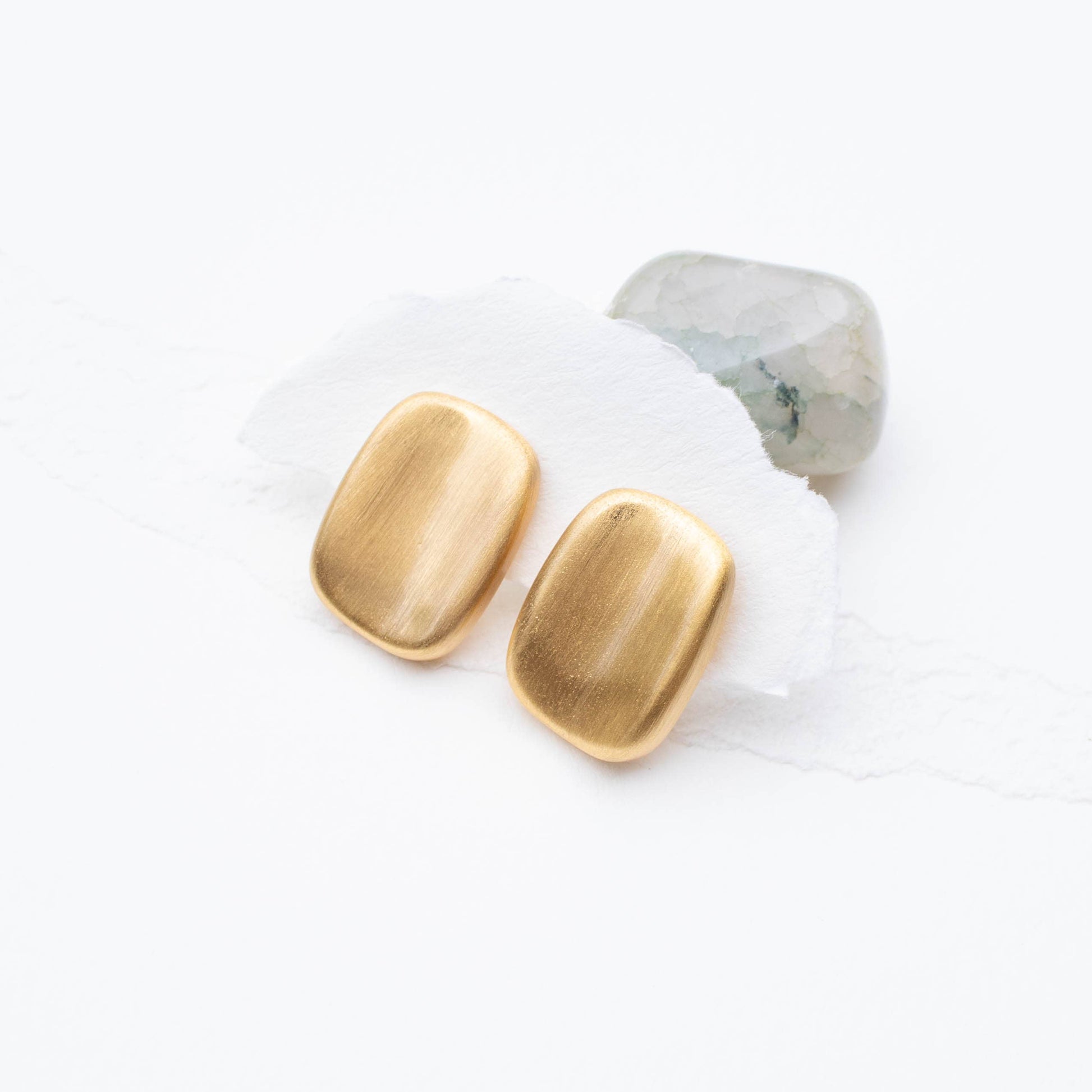 Minimalist yet stylish, these rectangular stud earrings feature a soft brushed finish in matte gold or silver. Subtle and versatile for everyday wear. Silver posts make them suitable for sensitive ears.