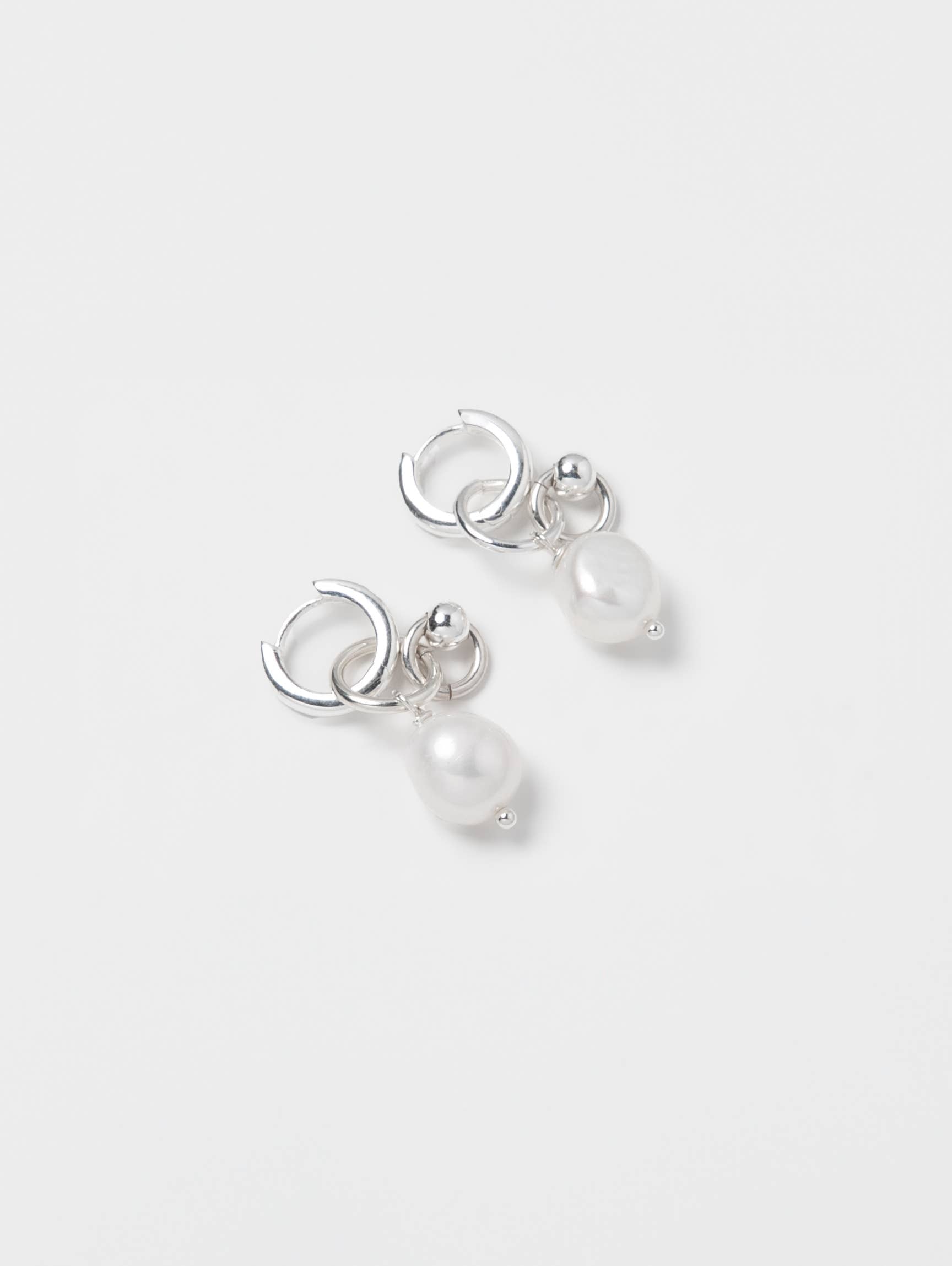 • 925 Sterling silver huggie hoop earrings with freshwater pearl charms and sterling silver hinges