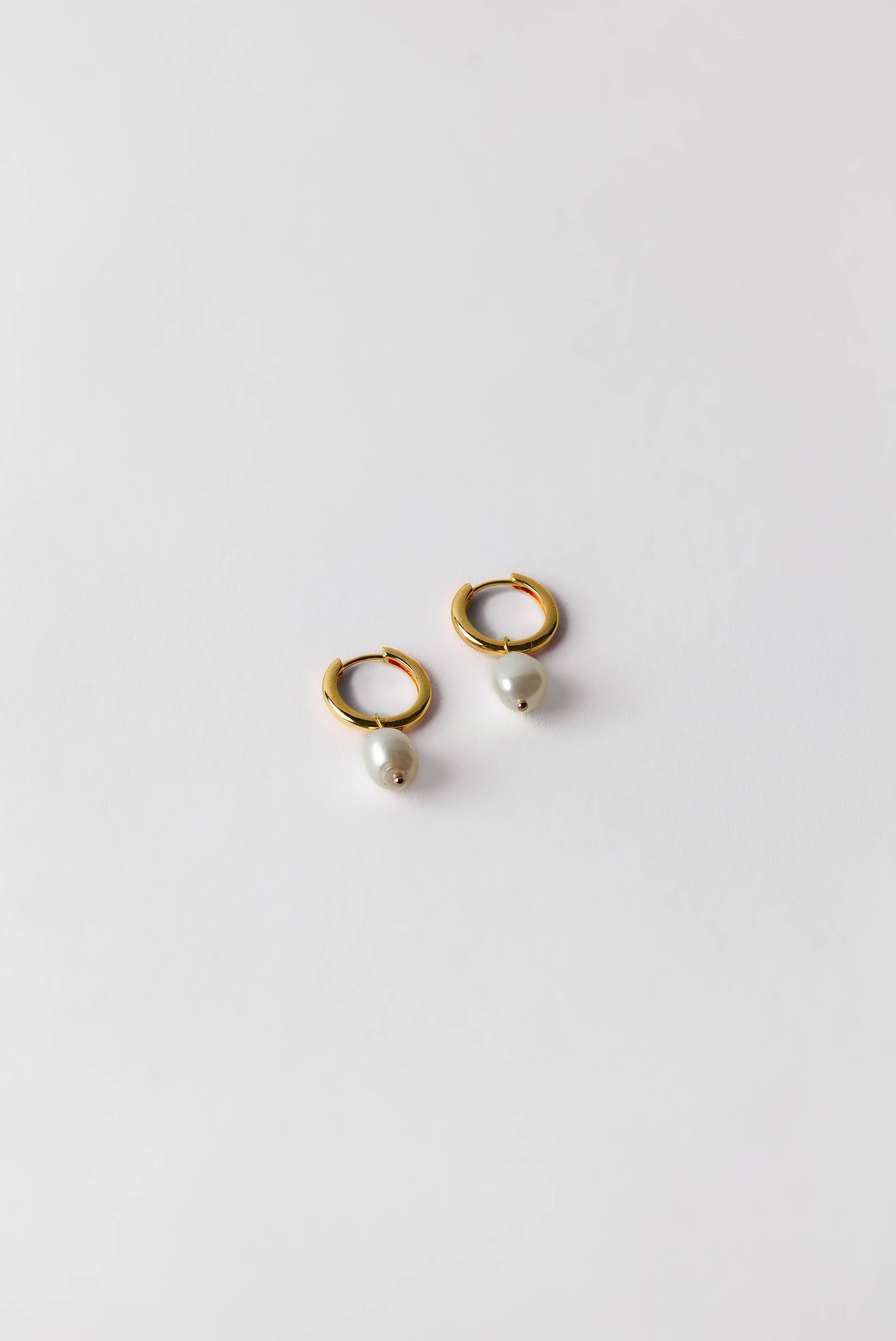 • 14k Gold plated brass hinged hoops with removable freshwater pearl